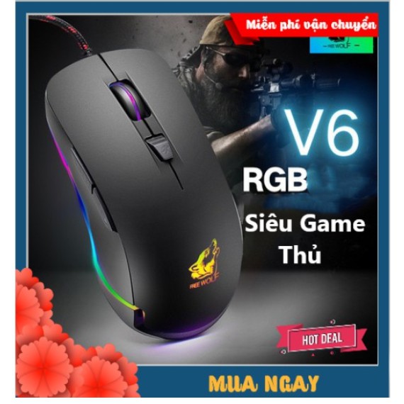 CHUỘT CHƠI GAME LED RGBFREE WOLF V6 (Đen)