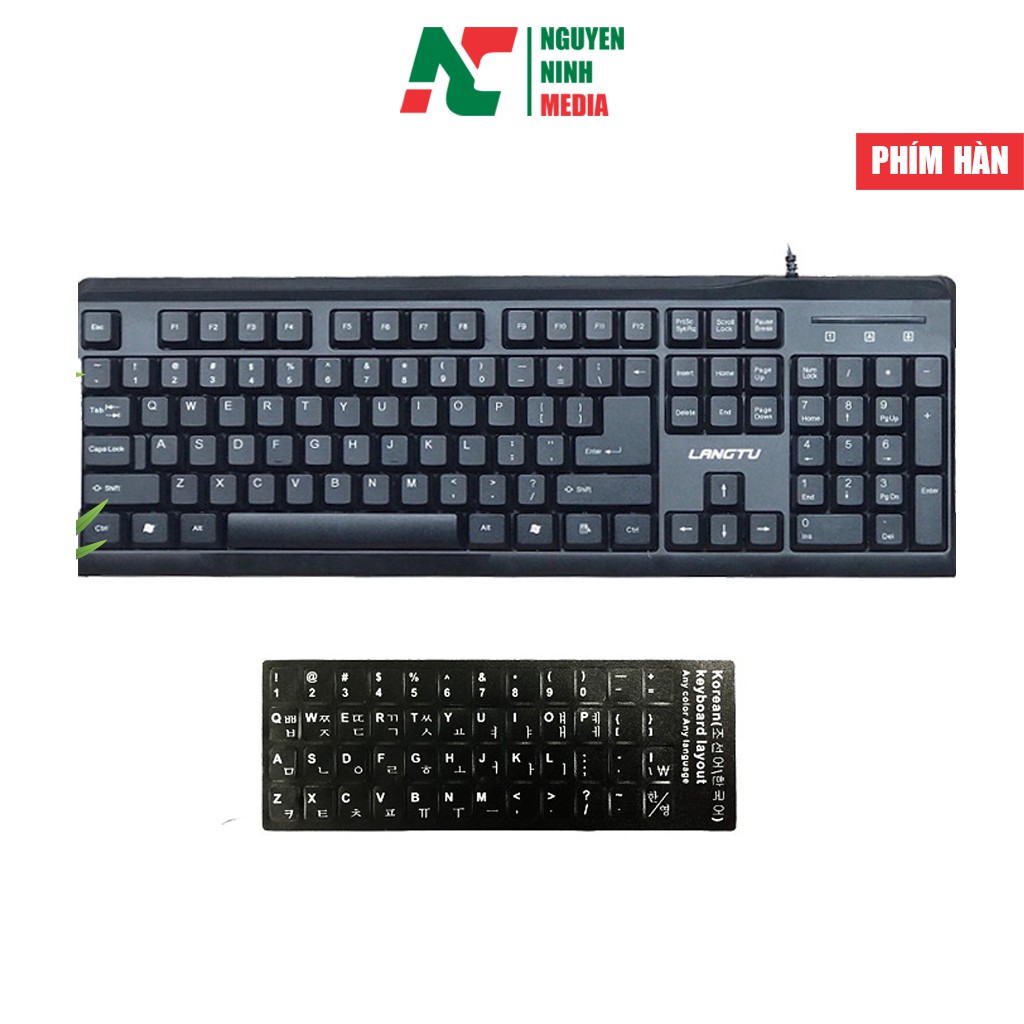 Bộ combo bàn phím cho Người học tiếng Hàn Langtu LK-106 và Miếng dán bàn phím tiếng Hàn