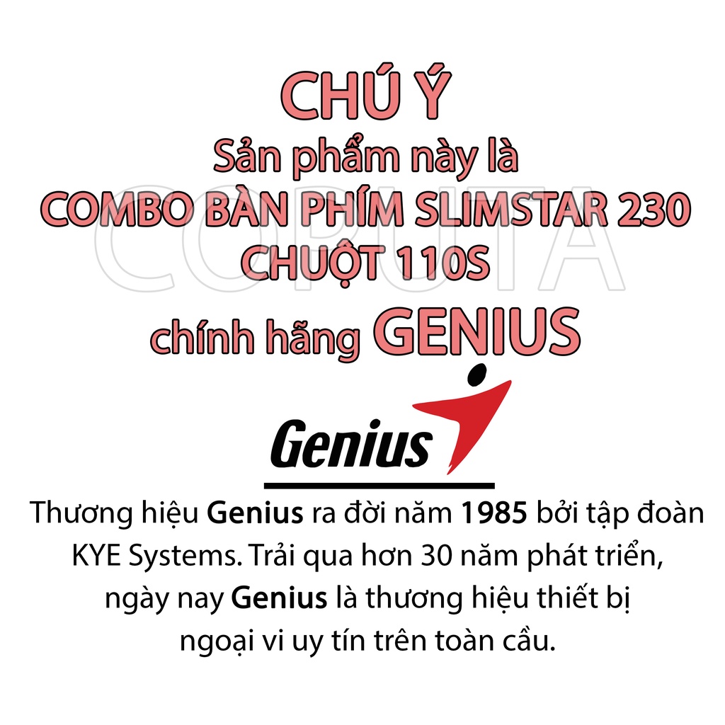 - Ưu điểm của dòng phím này là PHÍM GÕ ÊM MƯỢT - YÊN TĨNH - RẤT BỀN (một đặc điểm chung của dòng sản phẩm Genius toàn cầu).