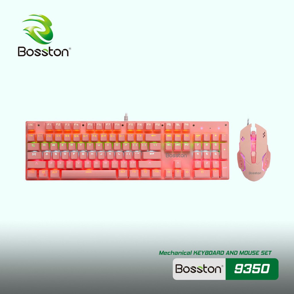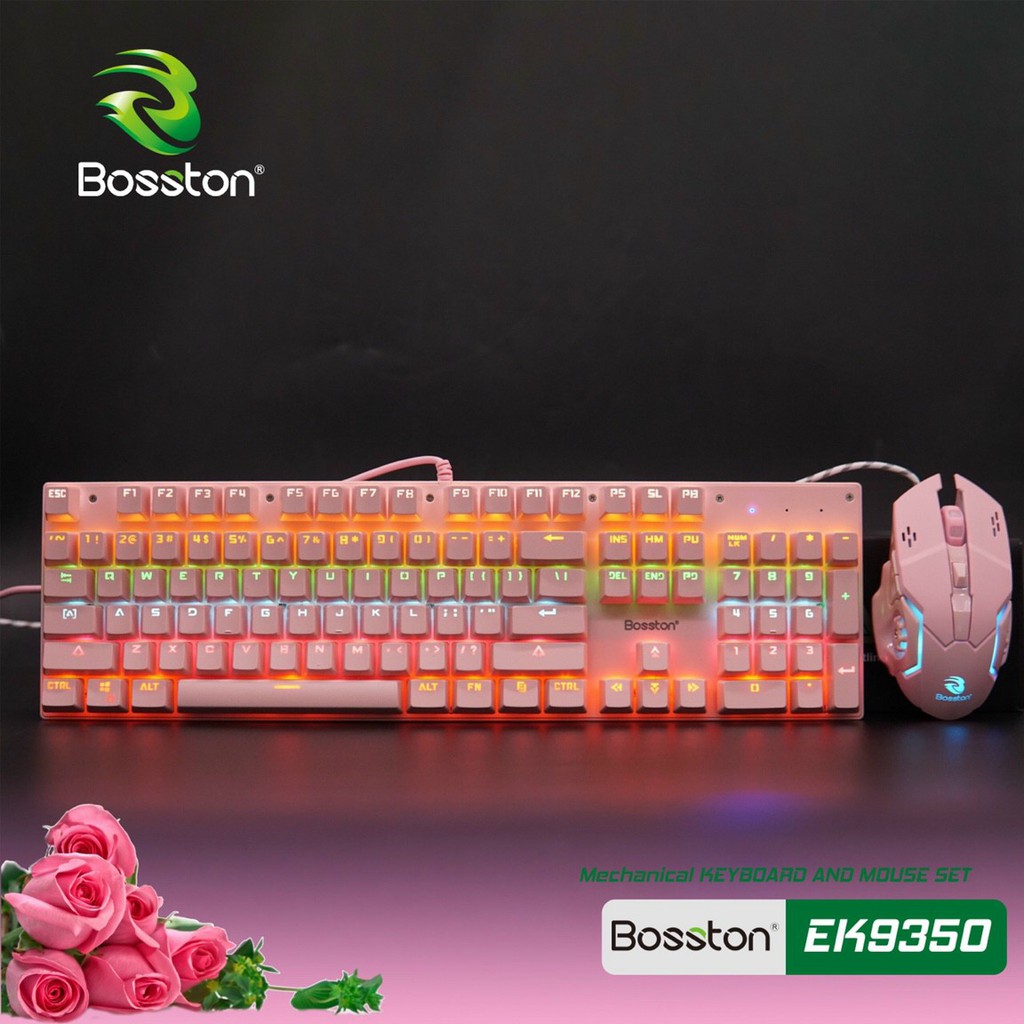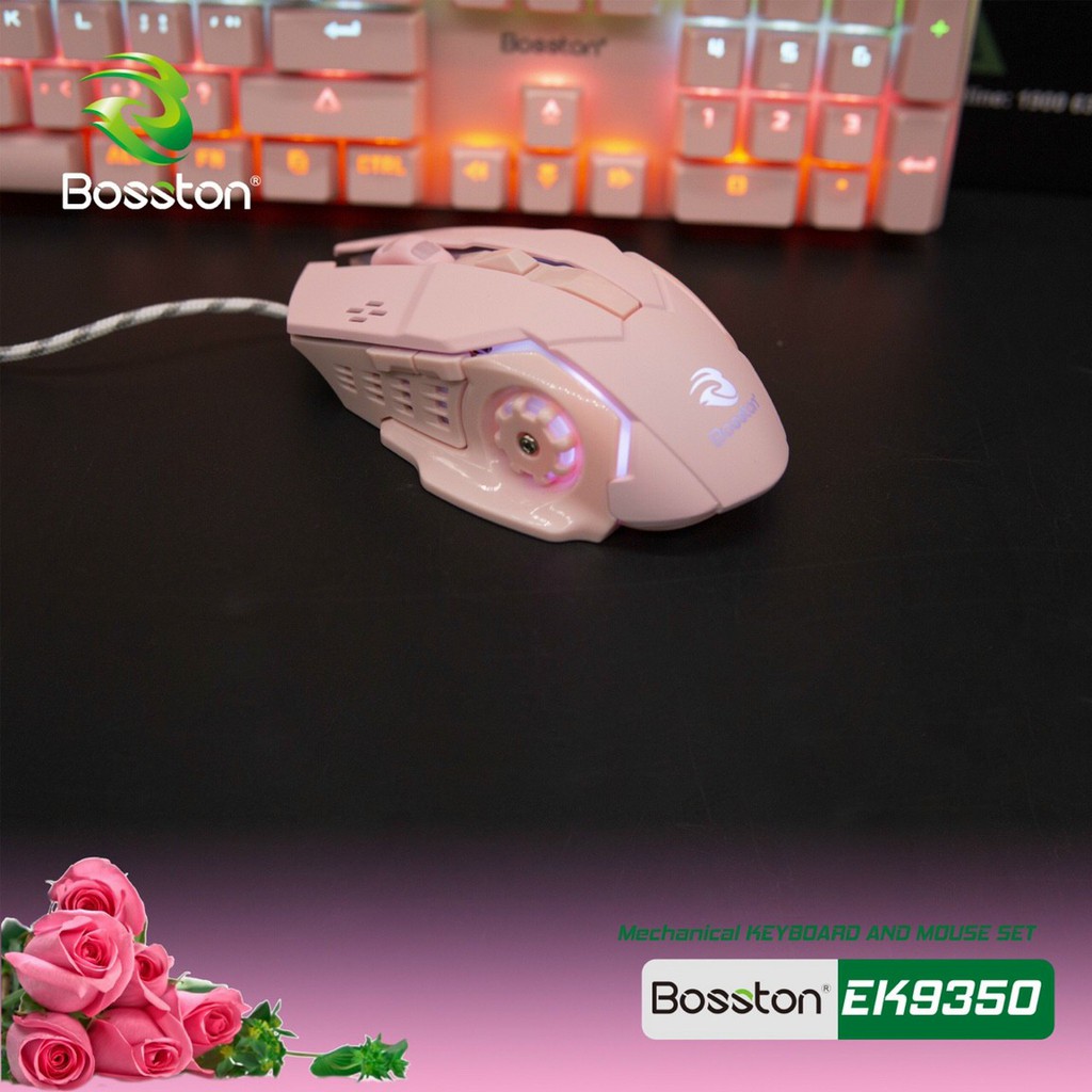 Combo Bàn phím cơ và Chuột chuyên game Bosston EK9350 - thay đổi 9 chế độ đèn Led (Hồng) - Hãng phân phối