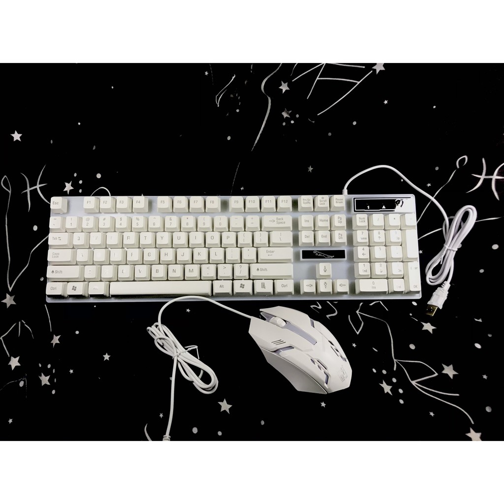 1 bàn phím G61 màu trắng và chuột đổi màu