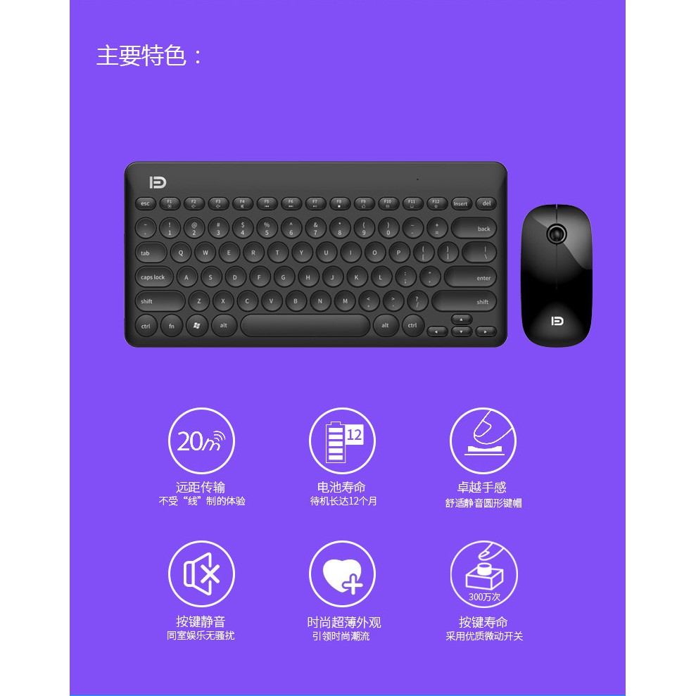 Combo Bàn phím và chuột không dây mini Ultra Slim 2.4G Wireless FD iK6620 pin dùng đến 12 tháng (4 màu) - Chính hãngTính năng