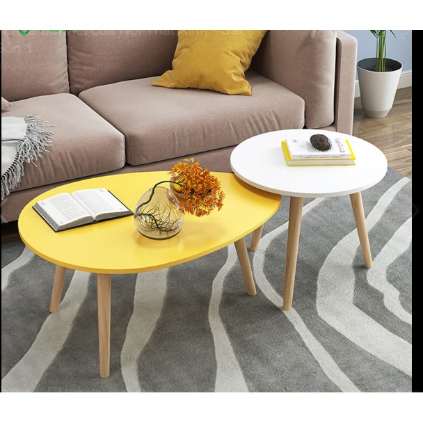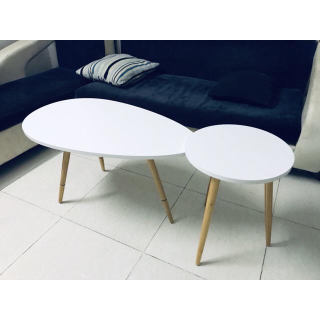[COMBO BÀN TRÀ SOFA CAO CẤP]🍃 Kích thước: 1 bàn mặt trứng rộng 50cm dài 90cm cao 45cm, 1 bàn D50 mặt bàn rộng 50cm cao 47cm