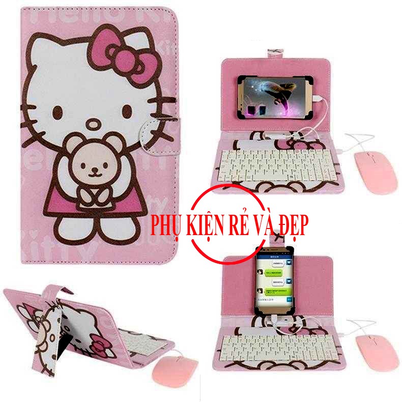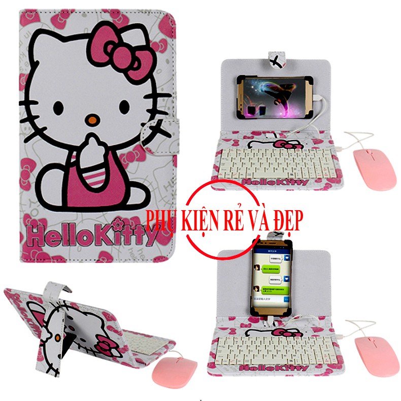 Giới thiệu sản phẩm: Combo bao da bàn phím + chuột + lót chuột hình Hello Kitty dễ thương- Bạn thường dùng Smartphone của mình để soạn văn bản, Bạn muốn Smartphone trở nên đặc biệt hơn, thời trang hơn và hơn hết là tiện dụng hơn thì bao da đa năng kiêm bàn phím và chuột dành cho Smartphone Android chính là phụ kiện tuyệt vời dành cho chiếc điện thoại thân yêu của bạn. Với 4 giá treo ở 4 góc tương tích mọi smartphone Android có màn hình từ 4.5 – 7 inch. Phụ kiện này ngay lập tức biến chiếc smartphone của bạn thành một chiếc Laptop thu nhỏ nhờ bộ bàn phím và chuột được thiết kế tinh tế: Bàn phím mềm và Chuột rời.