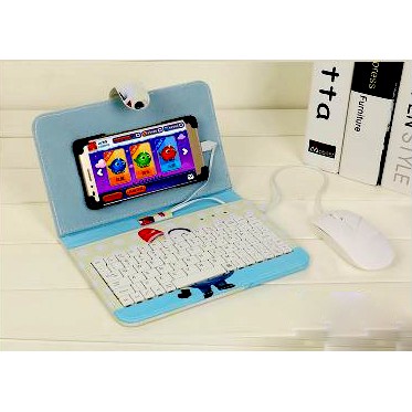 Bộ Combo bao da bàn phím + Chuột + lót chuột hình CARL cho điện thoại, máy tính bảng từ 4 đến 7 inch