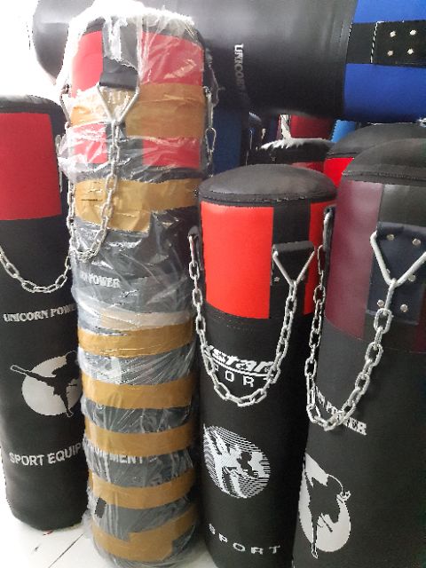 Combo bao gồm 1bao dồn sẵn dây treo xích chiều cao 1m + 1 cặp găng mma như hình.Bao được may bằng da PU dày, dồn đúng kỹ thuật bằng mút định hình và vải thun.