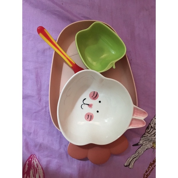 combo bát ăn dặm sứ cho bé gồm 2 bát hình nhỏ và 1 khay ăn dặm + 1 thìa báo nóng cho bé ăn dặmtuỳ chọn mẫu