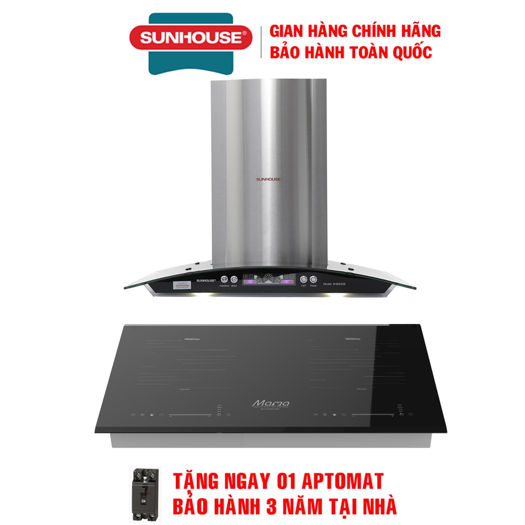 Giới thiệu Combo Bếp đôi điện từ Sunhouse mama MMB-88HL + Máy hút mùi kính cong Sunhouse SHB6626, Bảo hành tại nhà