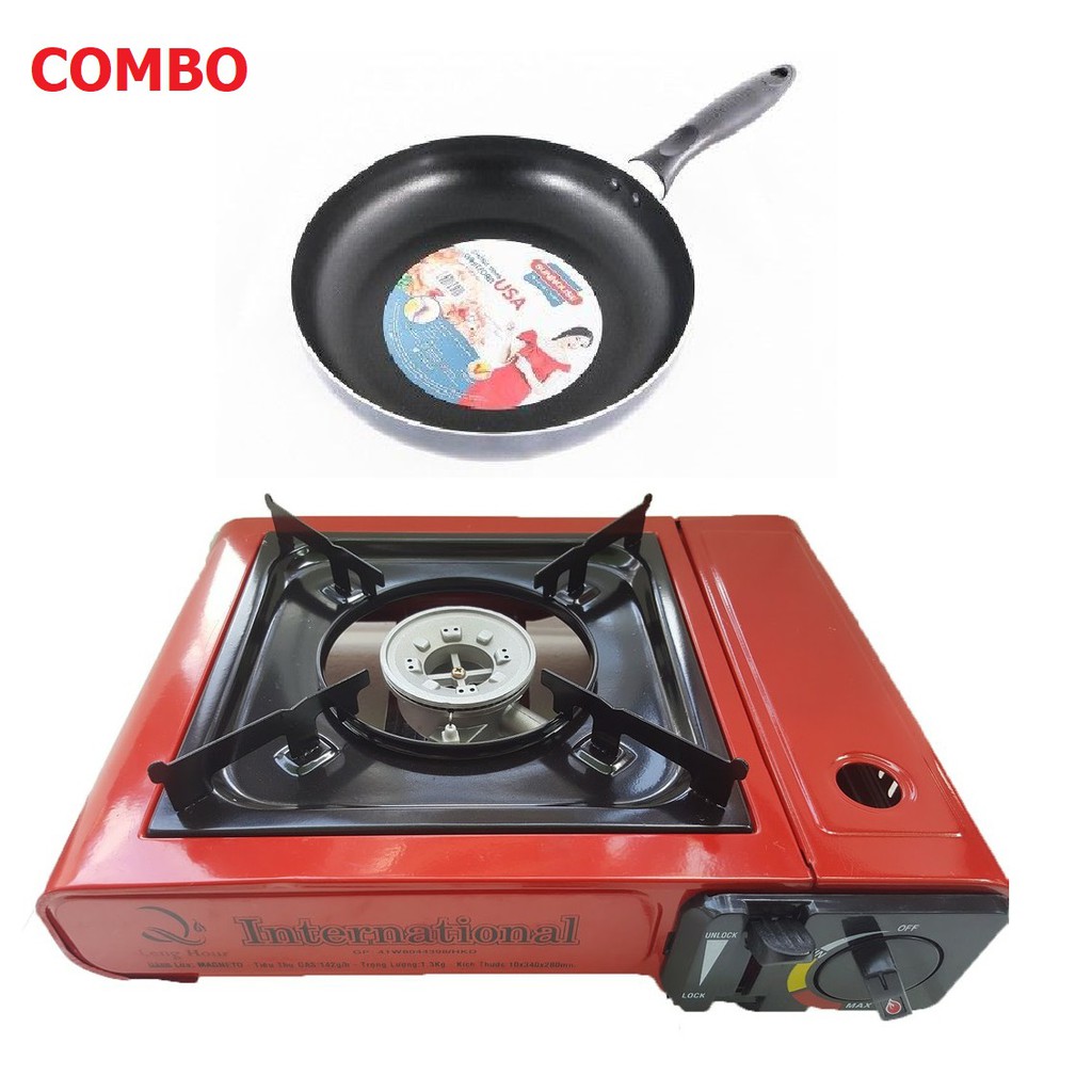Combo gồm 01 bếp ga kèm theo chảo chống dính SunhouseBếp ga mini INTERNATIONAL giá sập sàn shopee