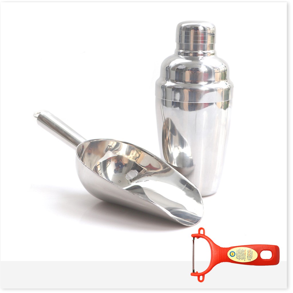 Combo bình lắc và dụng cụ xúc đá inox cao cấp tặng Dao bào nhựa đỏ BXD01 – Dụng cụ pha chế