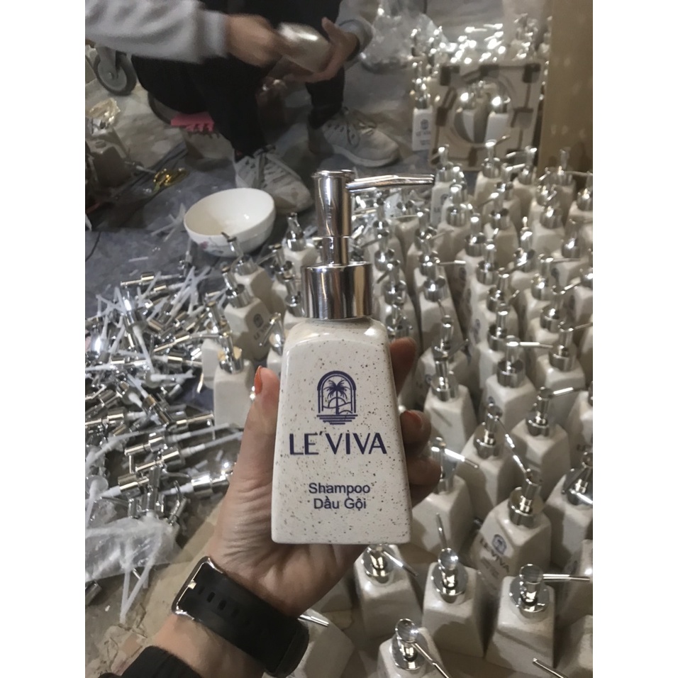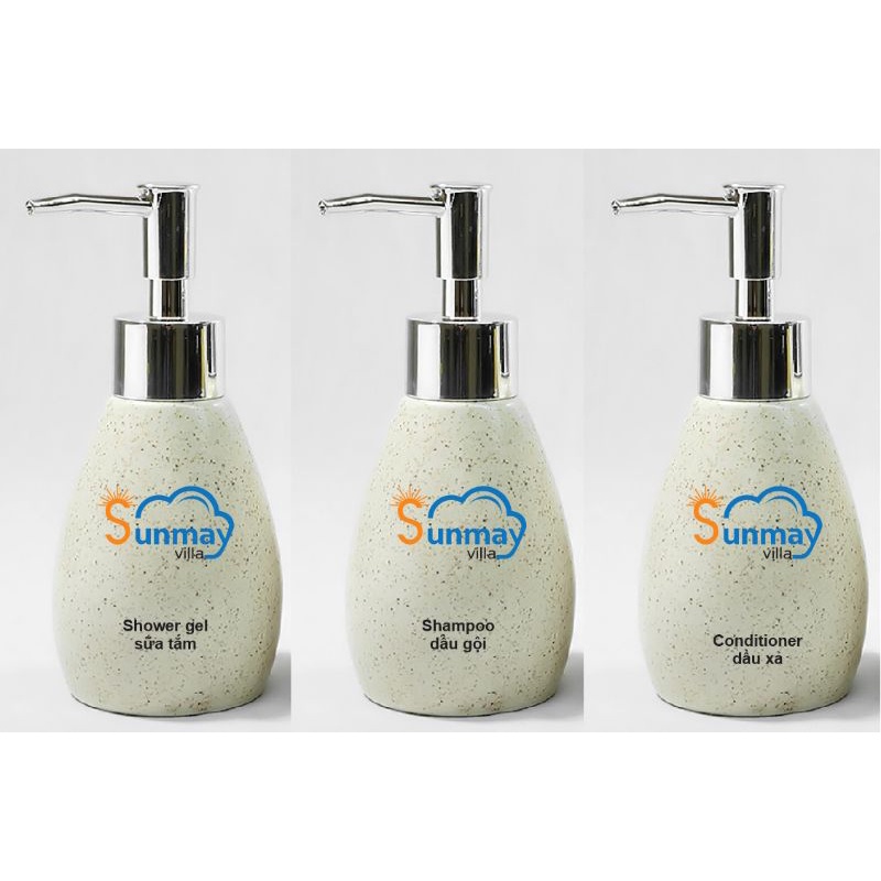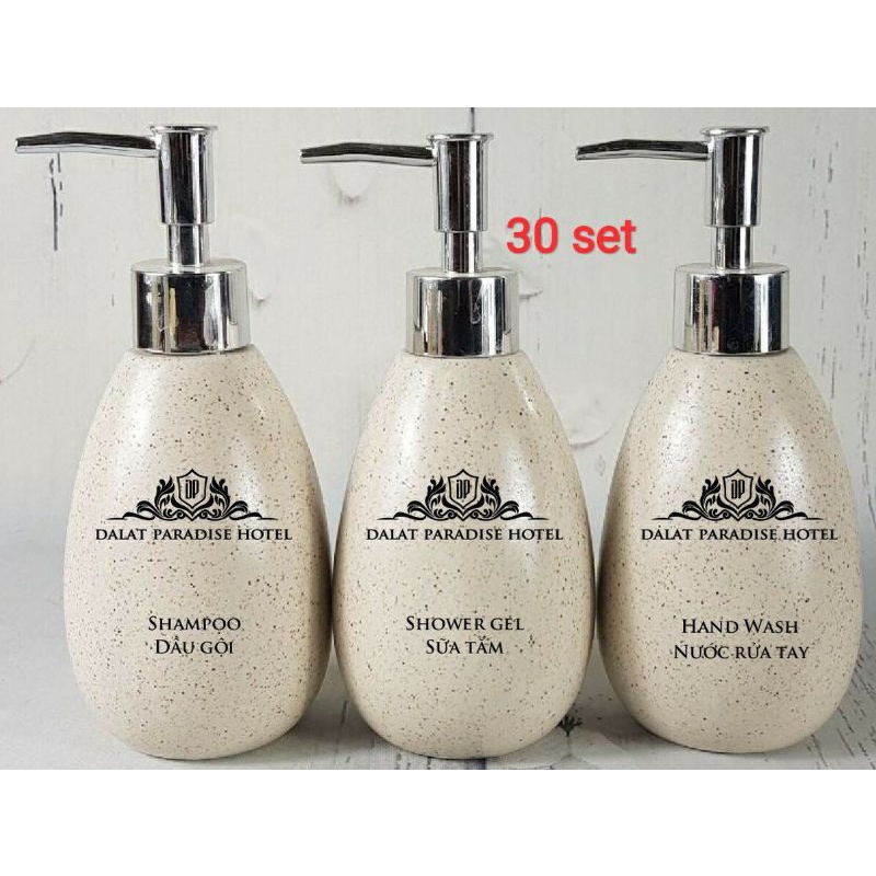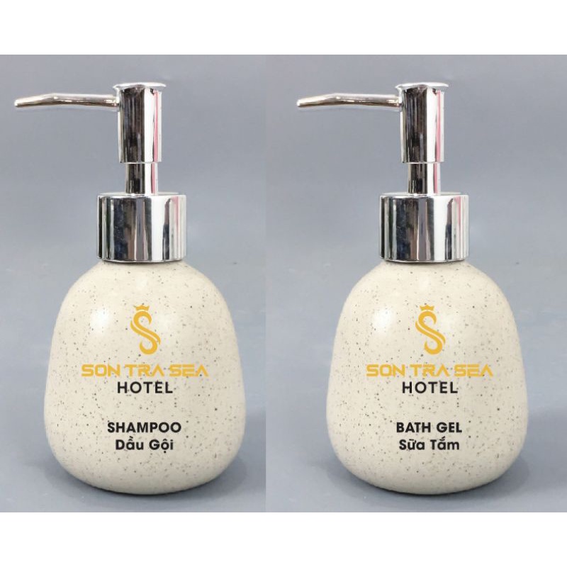 Combo bình sữa tắm, bình nước rửa tay, bình xà phòng có in hình chữ khách sạn mẫu mới nhất 2022Giới thiệu Chai Xịt Đựng Sữa Tắm, Dầu Gội bằng gốm sứ cao cấp