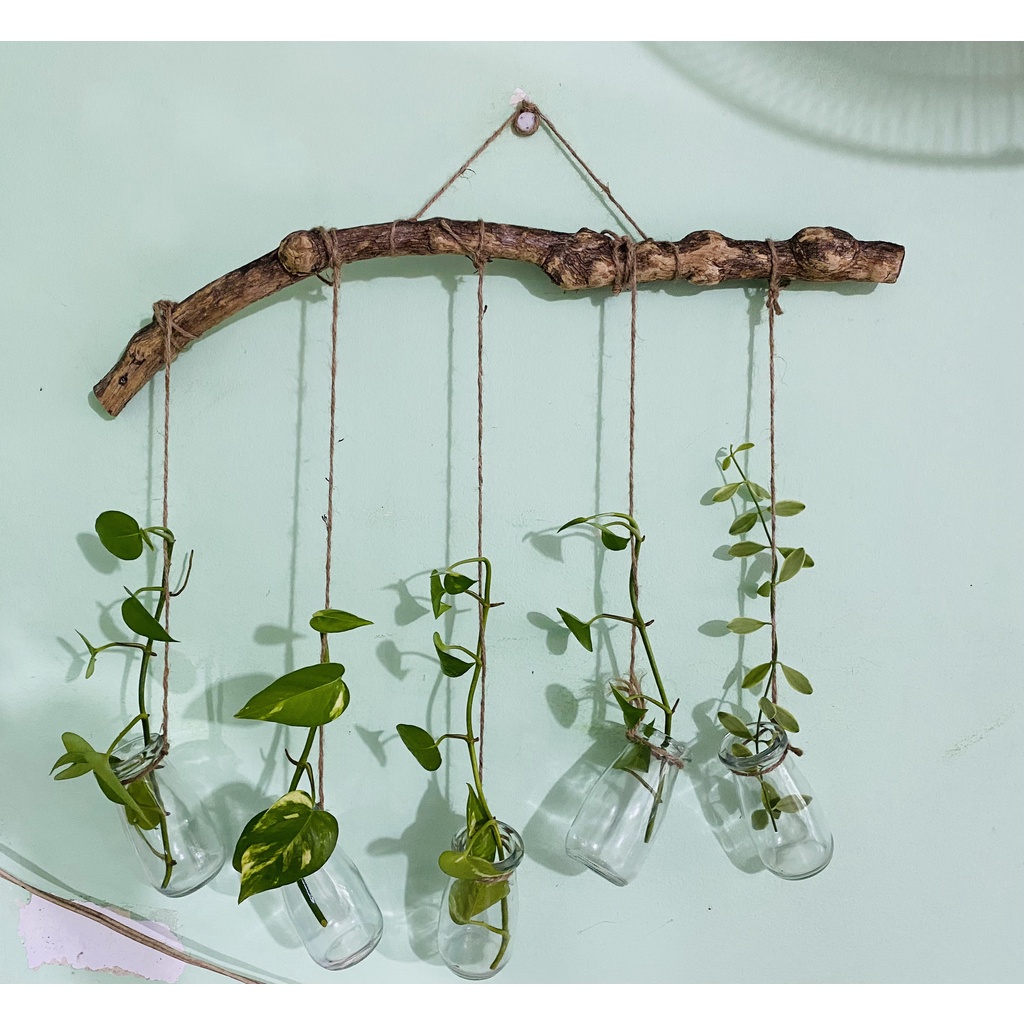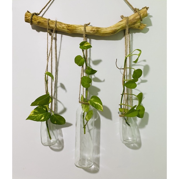 -Sp 2 : Combo 3 chậu thuỷ tinh gồm 2 chậu dung tích 100ml cao 10cm và 1 chậu dung tích 350ml cao 20cm . Gồm 1 thanh gỗ tự nhiên dài 30-40cm kèm dây thừng treo