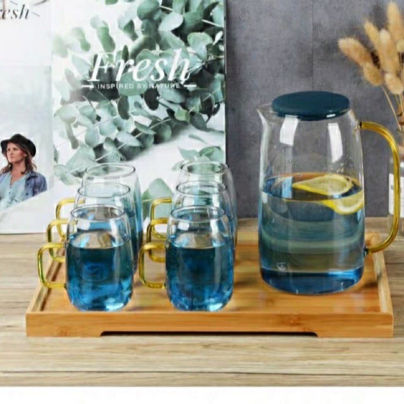 Nhà cửa & Đời sống > Bộ đồ bàn ăn > Bình nước & phụ kiện || Combo bộ 1 bình 6 cốc thủy tinh xanh ocean có hộp đẹp làm quà tặngCòn hàng