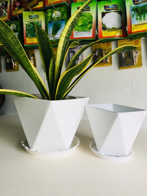 + Chậu nhựa giả sứ vuông cạnh tam giác thiết kế màu trắng nhựa dày dặn, Bóng đẹp độ bền cao ... Rất dễ dàng lau chùi ít bám bụi...