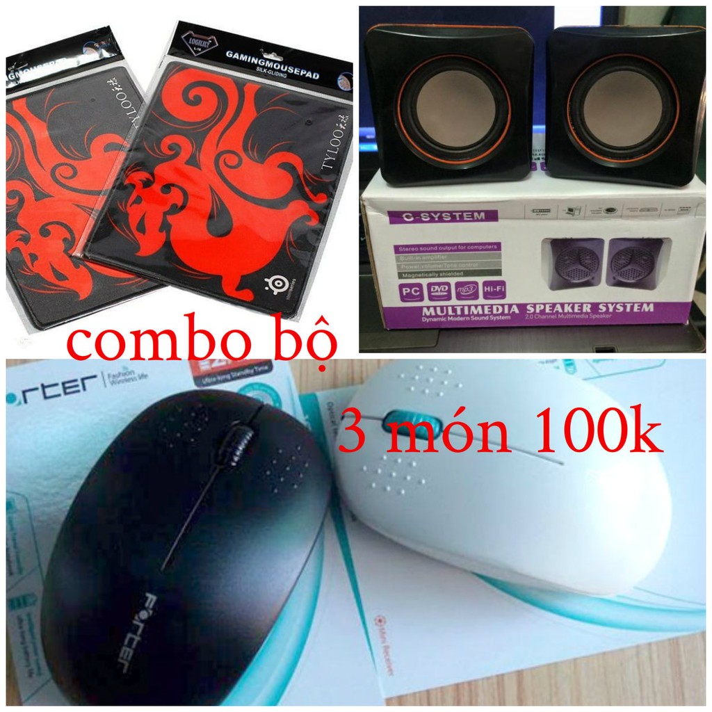 Máy tính & Laptop > Phụ Kiện Máy Tính > Bàn Di Chuột || COMBO BỘ 3 CHUỘT FORTER V181+LÓT G66+LOA XÍ NGẦUCòn hàng