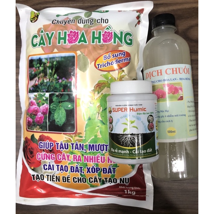 [ Combo ] Bộ 3 Món Chuyên Dùng Cho Hoa Hồng - Dịch Chuối - Humic - Phân Bón Hữu Cơ Hoa Hồng