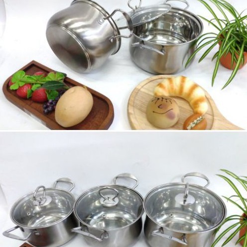 Nhà cửa & Đời sống > Dụng cụ nhà bếp > Nồi || Combo bộ 3 nồi 3 đáy nắp kiếng inox cao cấp nấu bếp từCòn hàng