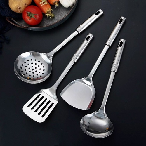 Giới thiệu COMBO bộ 4 vá sạn xẻng vợt inox, dụng cụ muôi muỗng vá sạn xẻng vợt, dụng cụ nhà bếp chiên xào nấu