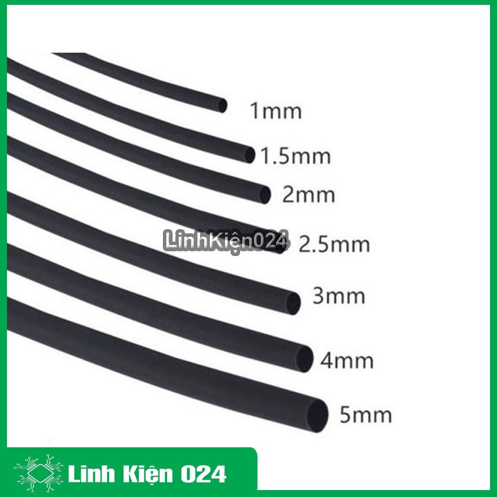 Combo Bộ 5 Ống Gen Co Nhiệt, Cách Điện 1mm, 2mm, 3mm, 4mm, 5mm, Dài 1m Mỗi Sợi - Màu đen