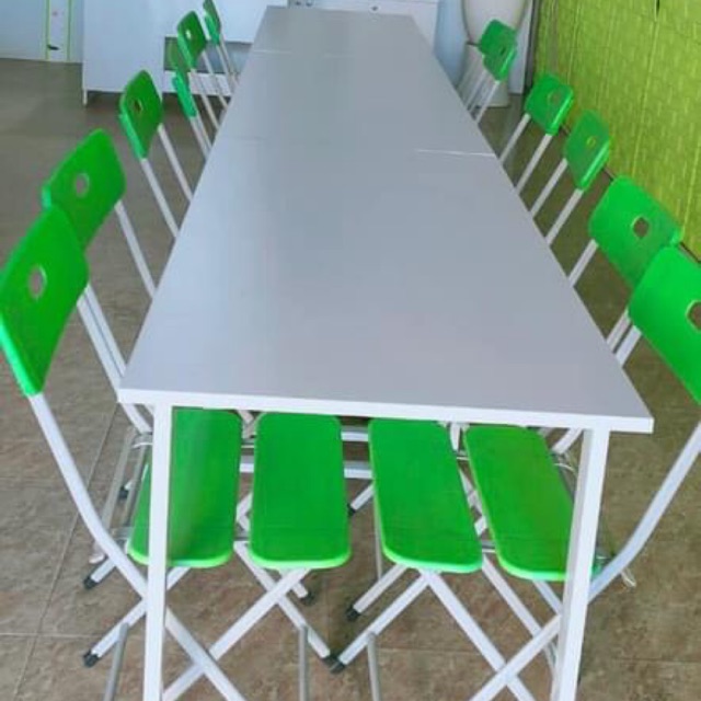 Combo gồm 1 bàn chân sắt chữ u kt 60x1.2m cao 75cm hộp sắt 20x40 . Chân sơn tĩnh điệnVà 1 ghế gấp 3 lá mặt nhựa chân sắt sơn tĩnh điện . Combo trẻ trung hiện đại