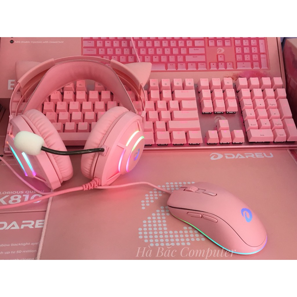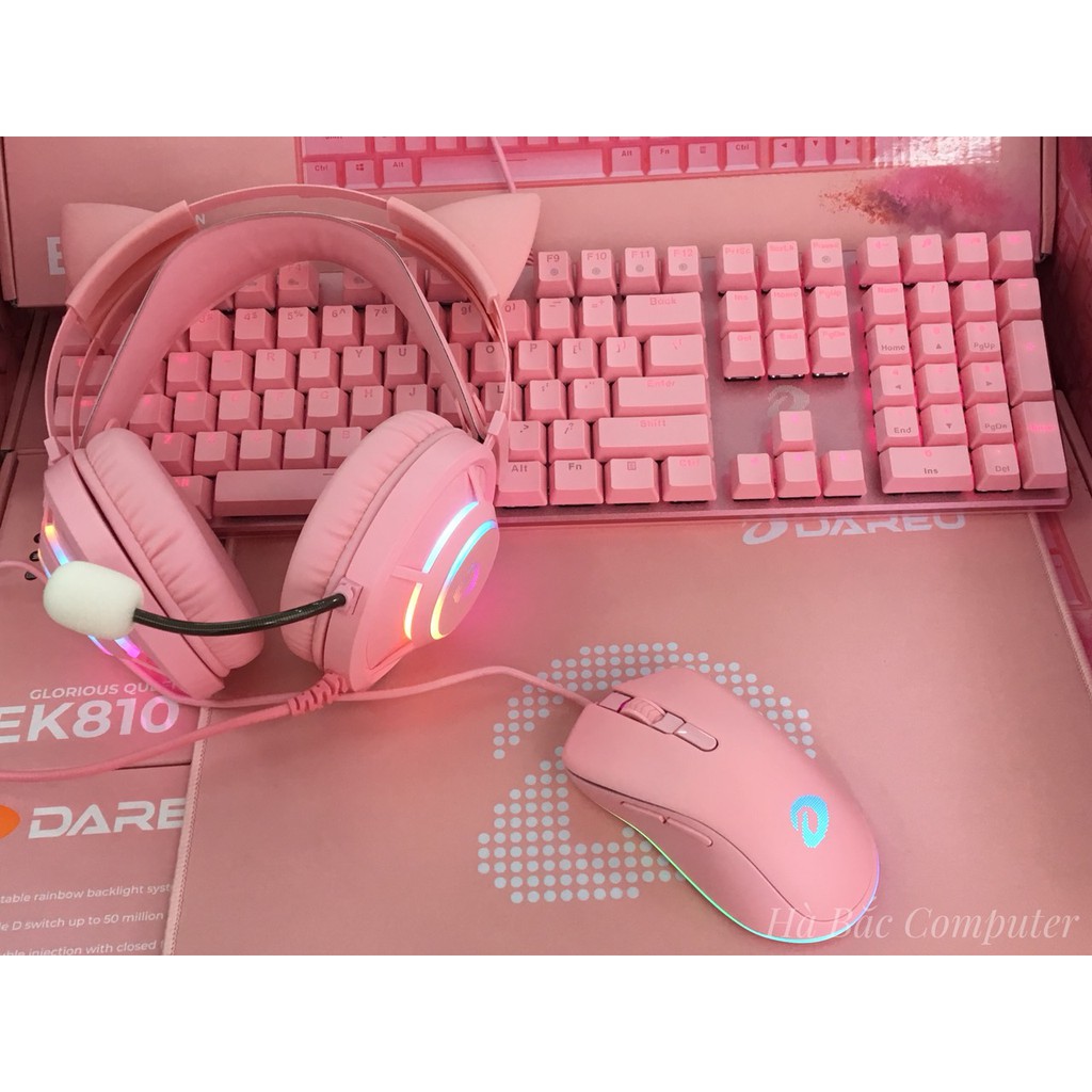 Máy tính & Laptop > Phụ Kiện Máy Tính > Bàn Di Chuột || Combo Bộ Bàn Phím + Chuột + Tai Nghe + Lót Di Chuột Màu Hồng DAREU - Bộ bàn Phím Chuột Gaming Màu PinkCòn hàng