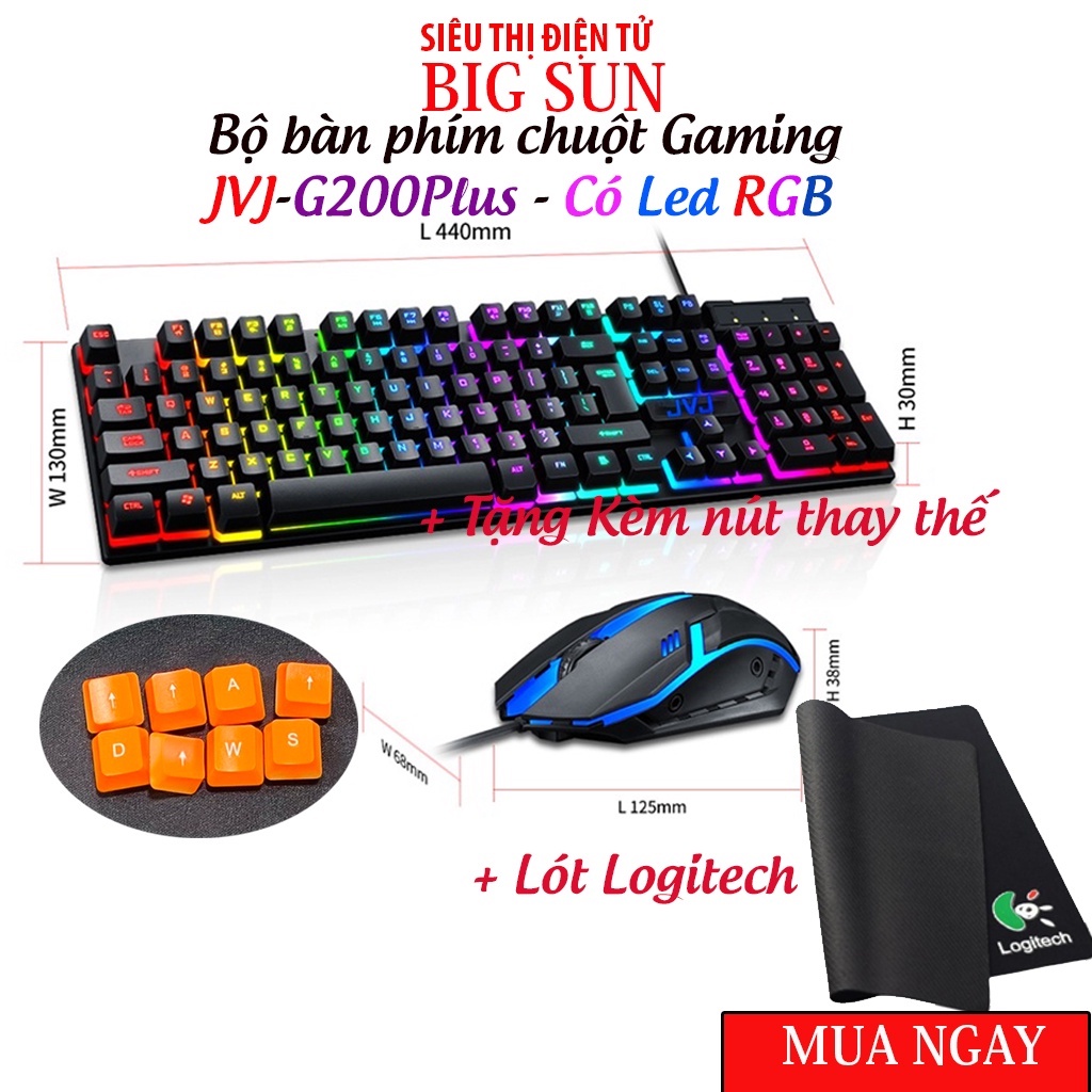 SIÊU THỊ ĐIỆN TỬ BIG SUN XIN GIỚI THIỆU SẢN PHẨM:Combo bộ Bàn Phím Gaming có dây Kèm Chuột Máy Tính, Bộ Bàn Phím Kèm Chuột Gaming G200 Plus JVJ-TF200 Có LED nhiều màu