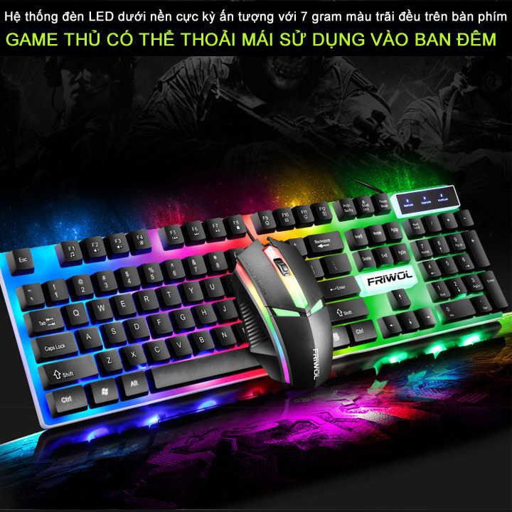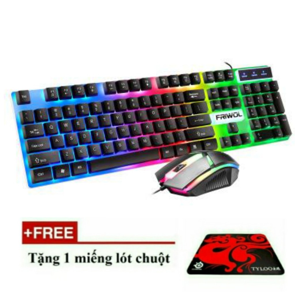 Máy tính & Laptop > Chuột & Bàn Phím > Bàn Phím Máy Tính || Combo bộ bàn phím và chuột giả cơ FRIWOL W10 đèn led nền cực đẹp, tặng kèm miếng lót chuộtCòn hàng