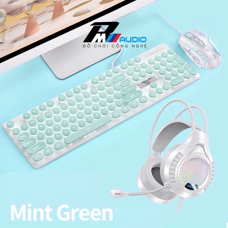 Combo Bộ Bàn Phím Và Chuột V8 Nút Tròn Có Led Xuyên Chữ Kèm Tai Nghe Gaming Q7 YINOIAO-BMVAUDIO