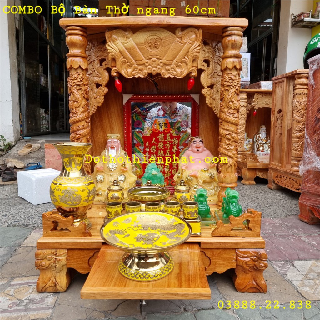 Combo bộ bàn thờ gỗ căm xe ngang 60cm mẫu mới