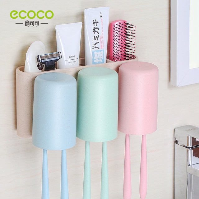 Combo bộ cắm chải 3 cốc và 1 nhả kem đánh răng dính cường lực ecoco siêu chắc