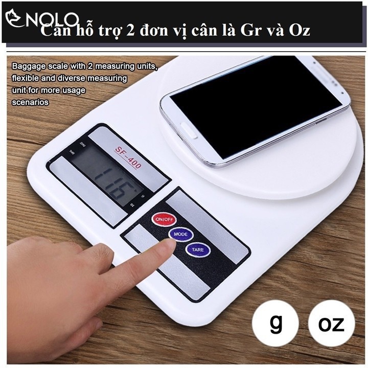 Cân gồm 2 đơn vị là gr, li. Bạn có thể chuyển đơn vị bằng nút mode.