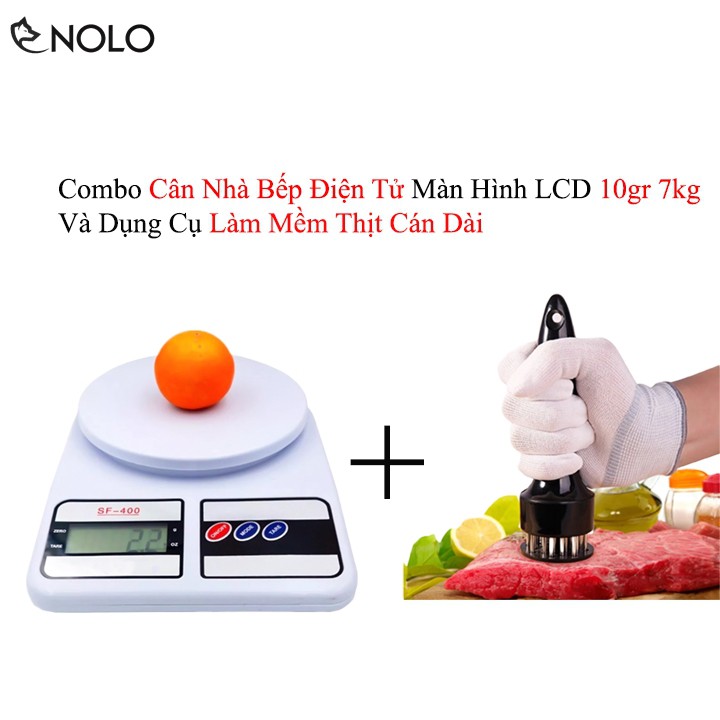 Combo Bộ Cân Nhà Bếp Điện Tử Màn Hình LCD 10gr 7kg Và Dụng Cụ Làm Mềm Thịt Cán Dài