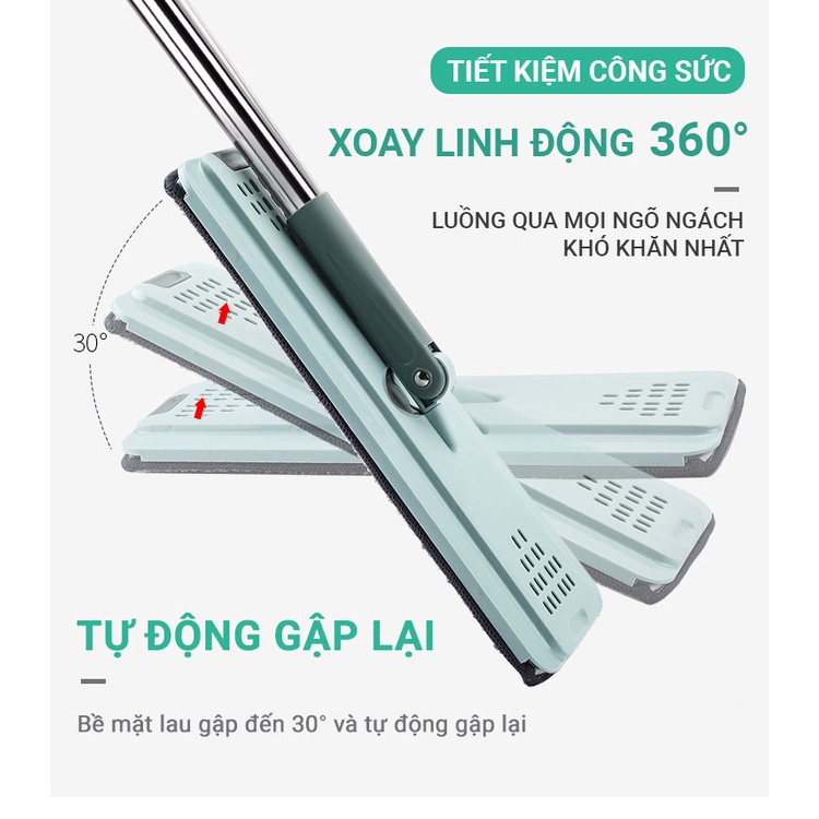 - Trong quá trình lau dọn, thao tác kéo và đẩy rất nhẹ nhàng cũng như việc giặt và vắt khô bông lau thì một xô nước là đủ để giải quyết toàn bộ phòng ngủ, hoặc phòng khách của bạn.