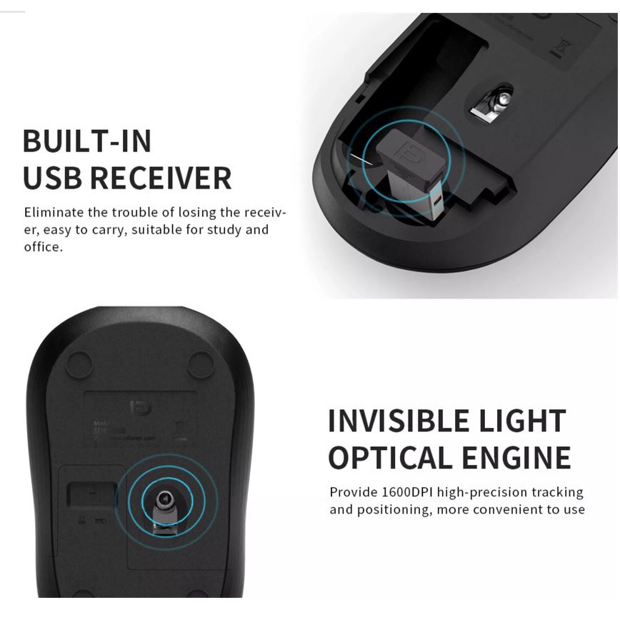 - Chuột không dây FUDE FD V1 màu đen gồm: Chuột không dây, đầu thu và pin khô AA