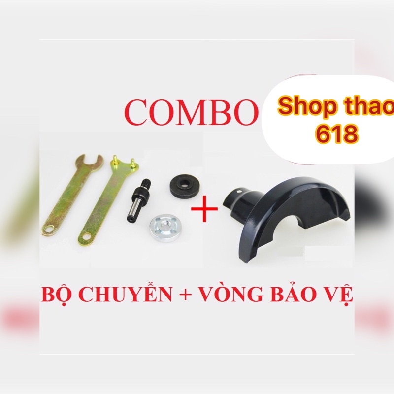 Combo Bộ chuyển máy khoan thành máy mài + Vòng bảo vệ