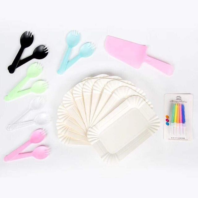 Combo bộ đĩa sinh nhật( Gồm đĩa, dĩa, dao, nến)Giá bán: 12k/ 1 bộ
