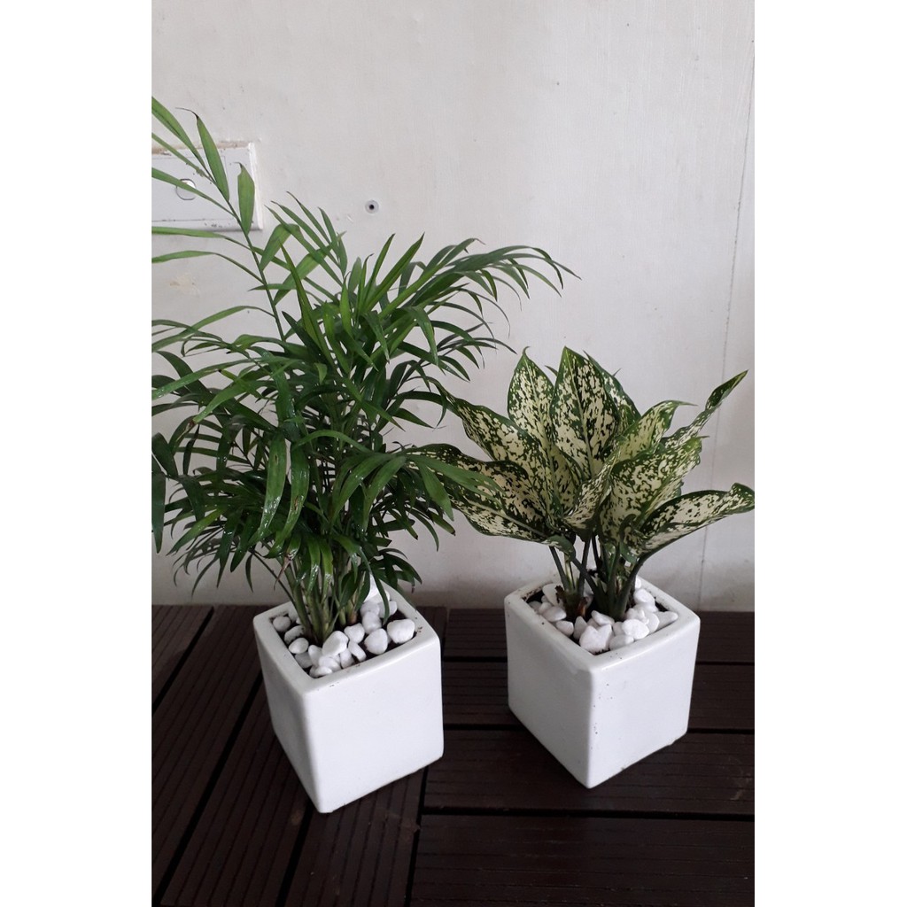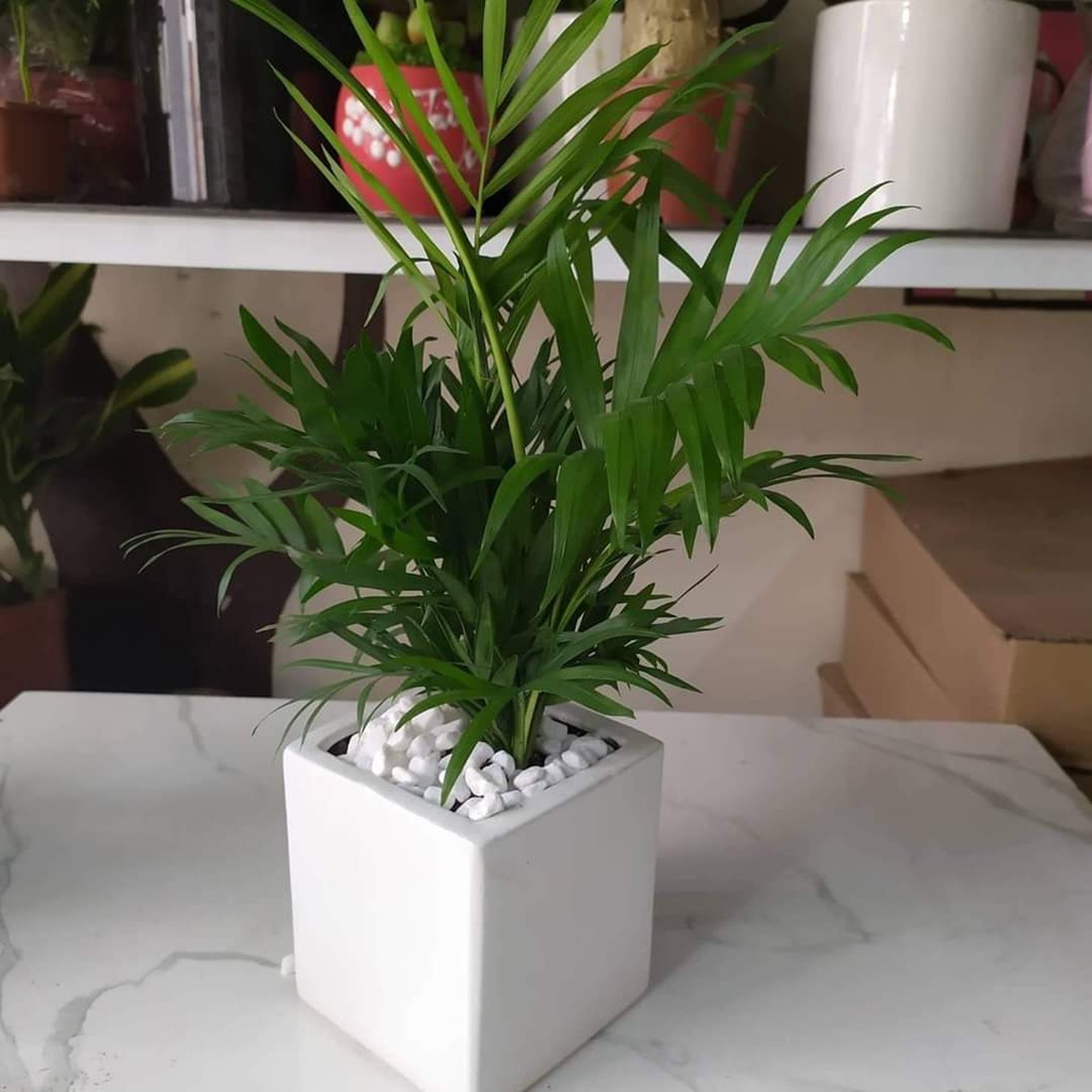 + Chậu sứ vuông trắng đường kính 10cm. Chiều cao cây từ 25 đến 30cm.