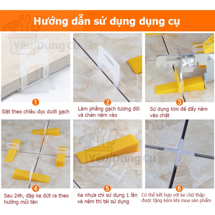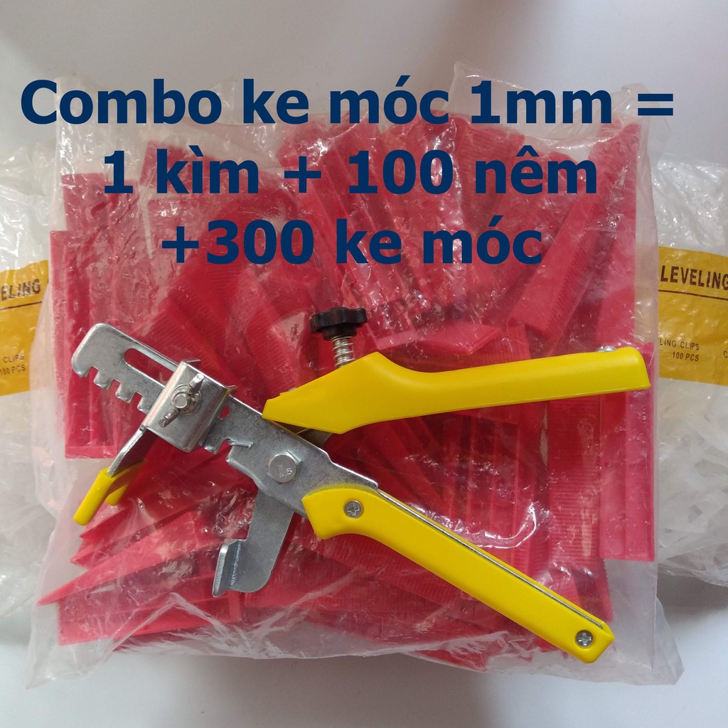 ** Combo ke móc 2mm bao gồm: 1 kìm siết ke + 100 cái nêm + 300 ke móc 2mm