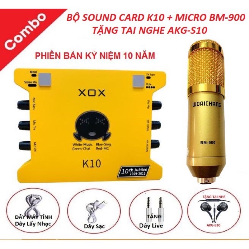 Combo Bộ Hát Livestream, Mic BM900 + Card xox K10 Bản Kỷ Niệm 10 năm + Tặng Tai Nghe + Đủ Dây Livestream