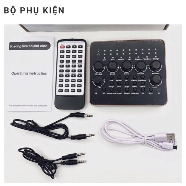 ✴️ Sound card v10 Bluetooth là một dòng sound card mới nhất chuyên dùng để thu âm, hát karaoke giải trí, hát livestream trên các trang mạng xã hội Fb, bigo, cctalk… Mặc dù mới có mặt trên thị trường nhưng sound card v10 Bluetooth đã được rất nhiều các tín đồ yêu âm nhạc trên tòan quốc tin dùng✴️ Sound card v10 Bluetooth cũng có các nút chỉnh bass (làm ấm giọng), treble (làm sáng giọng), echo (thêm vang cho giọng) và các nút điều chỉnh âm lượng micro, âm lượng nhạc beat, âm lượng tai nghe.✴️ sound card v10 Bluetooth có Remote điều khiển từ xa, các bạn có thể điều chỉnh sound card ngay trên điều khiển mà không cần động chạm gì tới sound card rất tiện lợi.✴️ v10 còn tích hợp thêm các nút tạo hiệu ứng vỗ tay, tiếng cười, hiệu ứng méo giọng kiểu autotune…