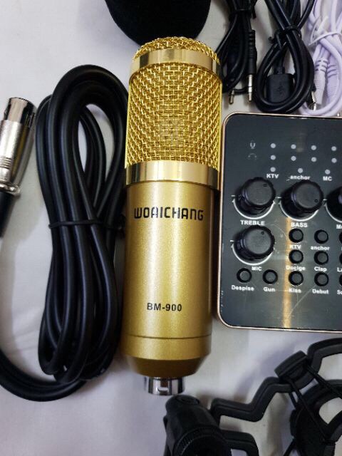 Thiết Bị Âm Thanh > Micro thu âm || Combo bộ hát livestream thu âm mic BM900 + sound card V10 plus + kẹp bànCòn hàng