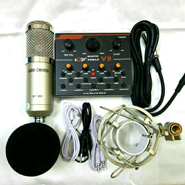 Sound V9 phiên bản quốc tế ( đầy đủ dây kết nối live stream sử dụng ngay)Full Hộp Micro BM 900