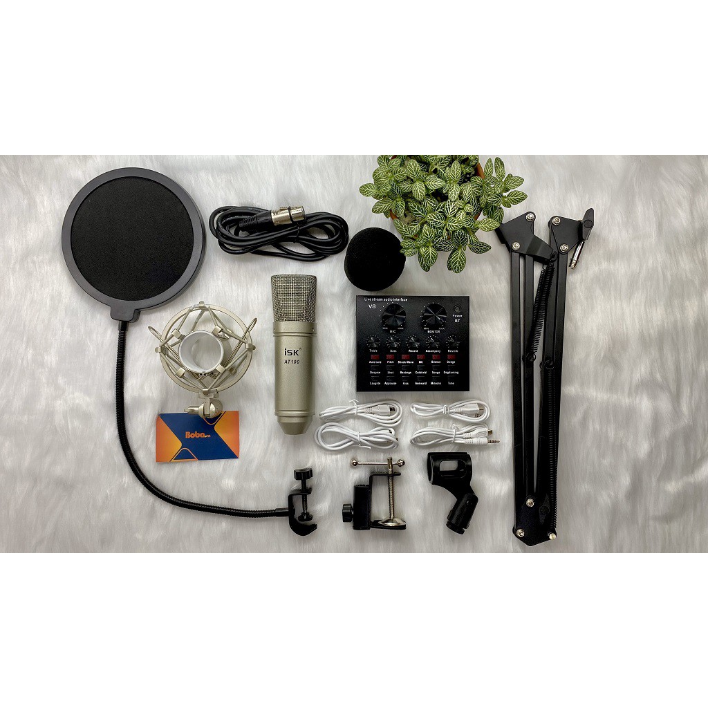 Thiết Bị Âm Thanh > Micro thu âm || Combo bộ livestream: Micro ISK AT100, sound card V8, màng lọc âm POP FILTER, chân kẹp microCòn hàng
