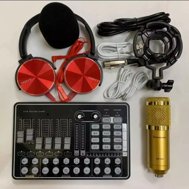 Thiết Bị Âm Thanh > Micro thu âm || Combo bộ livestream thu âm mic BM900 và sound card H9 tặng tai ngheCòn hàng