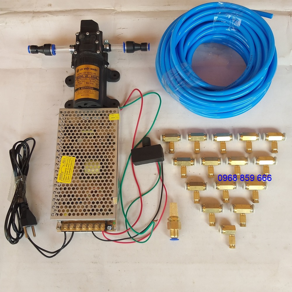 Giới thiệu combo Bộ máy bơm phun sương 5 béc đến 30 béc, có chiết áp điều chỉnh lượng nước (bộ có nguồn)