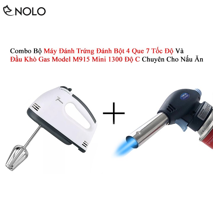 Combo Bộ Máy Đánh Trứng Đánh Bột 4 Que 7 Tốc Độ Và Đầu Khò Gas Model M915 Mini 1300 Độ C Chuyên Cho Nấu Ăn