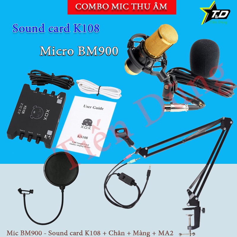COMBO BỘ MIC LIVESTREAM BM900 SOUND CARD KS108 DÂY MA2 CHÂN ĐẾ MÀNG LỌC - Trọn bộ mic thu âm bm900.1. BỘ SẢN PHẨM BAO BM900 VÀ SOUND CARD KS108 GỒM :