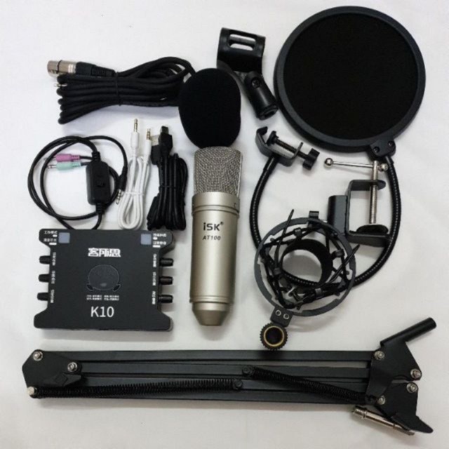 Thiết Bị Âm Thanh > Micro thu âm || Combo bộ mic livestream hát karaoke thu âm micro isk at100 card k10 dây ma2 chân màng lọc âmCòn hàng