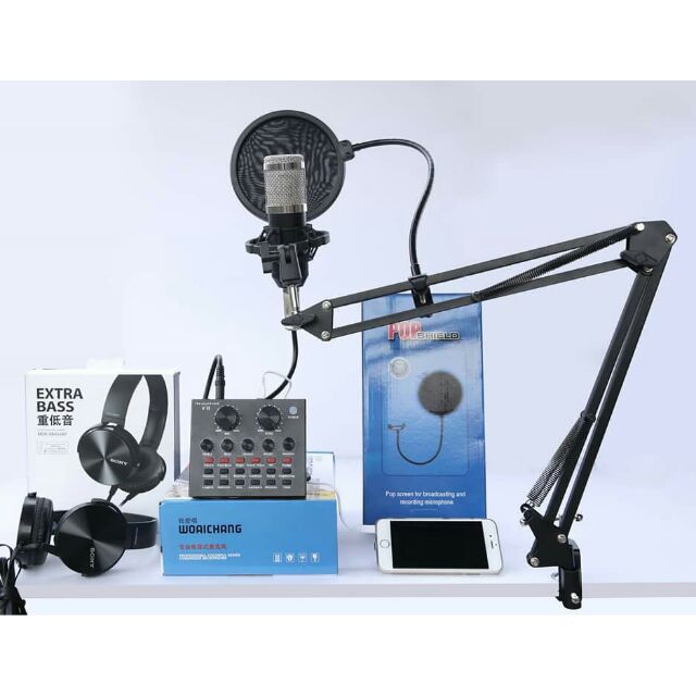 Thiết Bị Âm Thanh > Micro thu âm || Combo bộ mic livestream mic BM900 + soundcard V8 bản tiếng anh có autotuneCòn hàng
