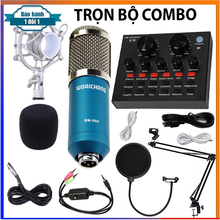 Combo Bộ mic thu âm BM900,SoundCard V8, dây livestream, giá đỡ và màn lọc âm